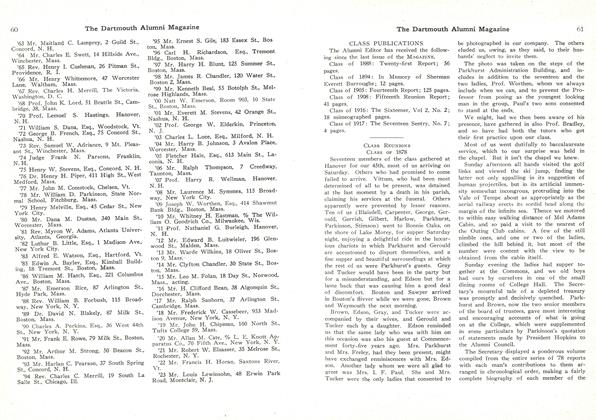 President, J. EASTMAN PECKER, '58. Secretary, E. K. WOOD WORTH, '97. Annual Reunion, last Wednesday in January.
