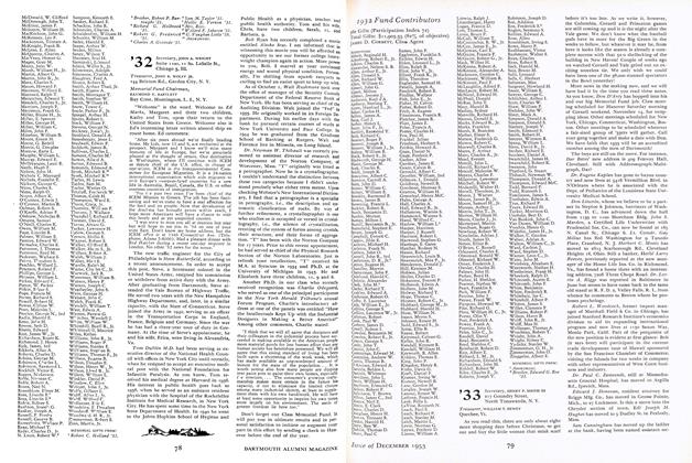 "Chantey III is the ninth vessel I have owned since Reuel Denney and I set out in 1933 in a 40- foot yawl, Istar, for Florida. In reading over the '32 report each month, I see insurance executives, lumber dealers, M.D.s, librarians, lawyers — by contrast this seagoing business I've been in must seem a strange career. Security? There is none, only a prayer that your health will stay good and that you won't be shipwrecked or run down in a fog. Virtues are that you're your own boss, that you know 'the sea around us,' and for all the rough treatment it gives you at times, it is honest-to-god stuff with no room for the slumgullion being stewed up in American culture these days.
